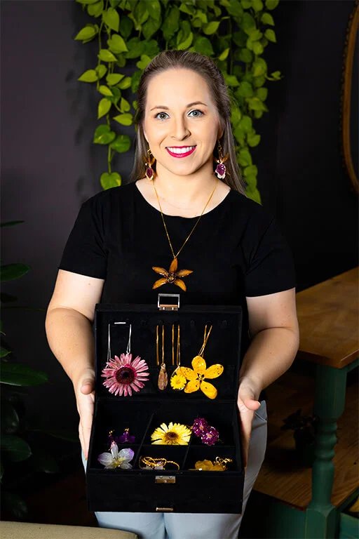 Recientemente, unió su pasión por las flores de la infancia con su experiencia en resina para crear Flor&Arte Resina, el método que cambiará la vida de muchas mujeres, preservando flores naturales y transformándolas en piezas increíbles, inmortalizando ramos de novias y creando joyas botánicas fascinantes.