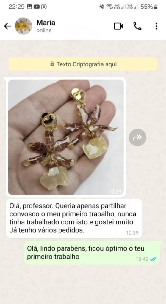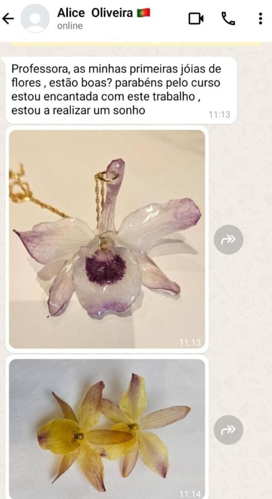 Recentemente, combinou a sua paixão de infância por flores com a sua experiência em resina para criar o Flor&Arte Resin, um método que está a transformar a vida de muitas mulheres. Este método preserva flores naturais, transformando-as em peças deslumbrantes, imortalizando buquês de noiva e criando joias botânicas fascinantes.